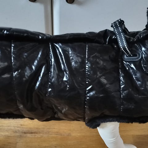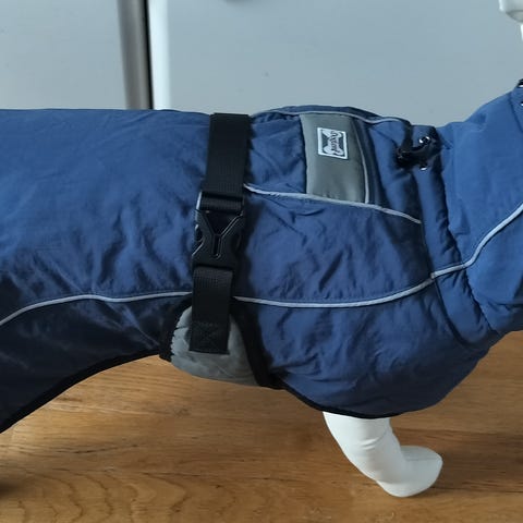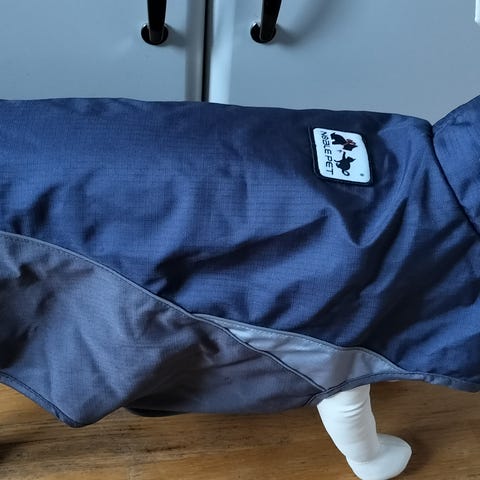 Helt ny aldrig brugt hunde vinterdækken med indbygget sele ryg mål ca 41 cm bryst mål ca 56 cm prisen er fast og den befinder sig i Valby