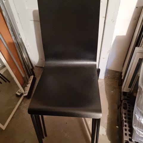 Spisebordsstol i sort krydsfiner og sort stel