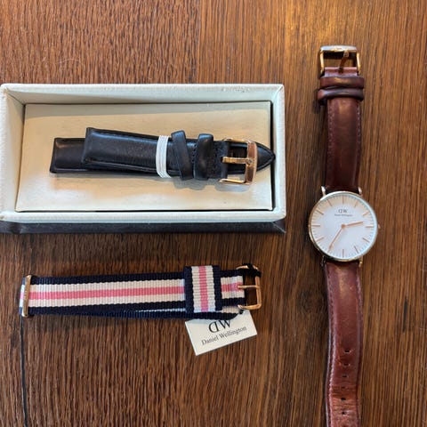 Daniel Wellington Dameur med sort læderrem og hvid urskive