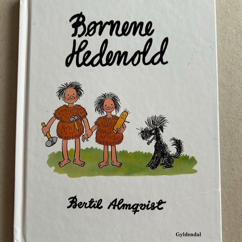 “Børnene Hedenold - Billeder fra Stenalderen” af Bertil Almqvist. Billedbog i tegneserieformat udgivet af Gyldendal i 1973. “For næsten 4000 år siden boede der i Sverige en familie, sol hed Hedenold. Far Ben og mor Knogle har to børn, som hedder Sten og Splint. Familiens bedste venner er urhunden Uraks, hesten Hårfagre og koen Mura. Af og til tager familien Hedenold ud på spændende og farefulde rejser.” Hardback i rigtig fin stand!