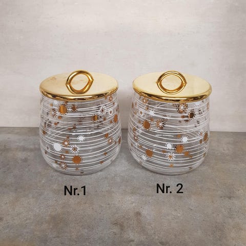 Den lille 8,5 cm i diameter og 7,5 cm høj..60,-