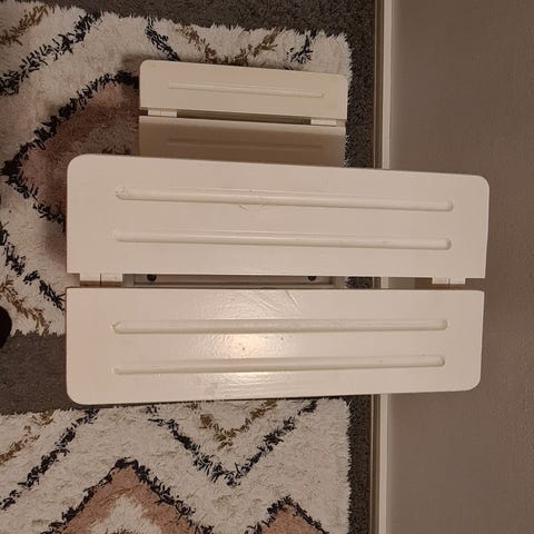 2 styks. IKEA Trappestige i hvidt træ. To-trins design med håndtag i toppen for nem transport. Velegnet til brug i hjemmet til at nå høje hylder eller skabe.
