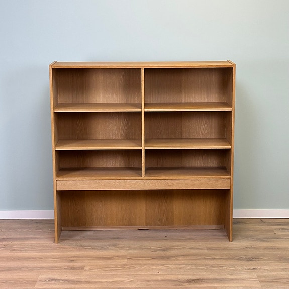 Flot stor reol i eg i flot design. Står flot med naturlige brugsspor og patina. Der haves flere og i andre størrelser. Der kan købes to, således man skjuler den grimmeside mod hinanden.