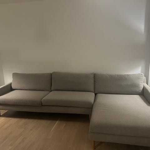 Brede 208, højde 83, dybde 89, Chaiselong 160 lang . Kan deles i 2 dele.