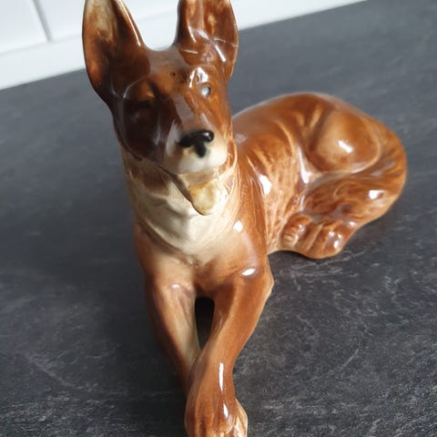 Penneholder, Schæferhund, Skrivetøjshund. Schæferhund ( Alsatian dog ) med egen pennebakke. Alle plader med dato, dag og måneder er intakte.