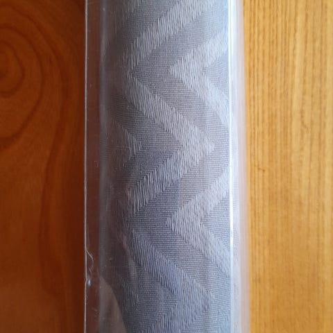 Mærke: Debel. Rullegardin i mørkegrå farve med sort grenmønster. Med mørklægning. Inklusive beslag til at sætte op.