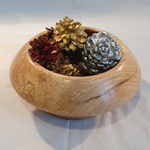 Træskål i lyst træ 18 cm diameter. (Indhold til inspiration)