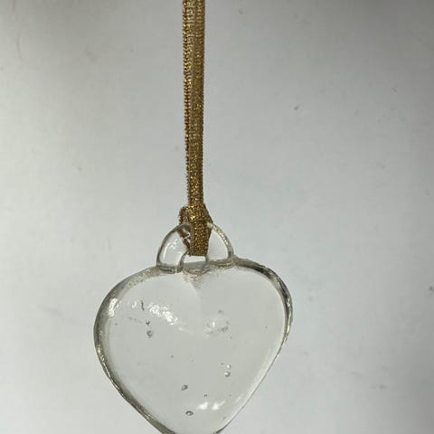Smukt glas-look hjerte i sølv med krakelé-effekt og rødt bånd til ophæng. Perfekt til juletræet, en gren eller som elegant dekoration.