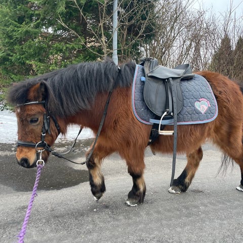 Min søn kan trække med hende, strigle osv. super fin børnepony.