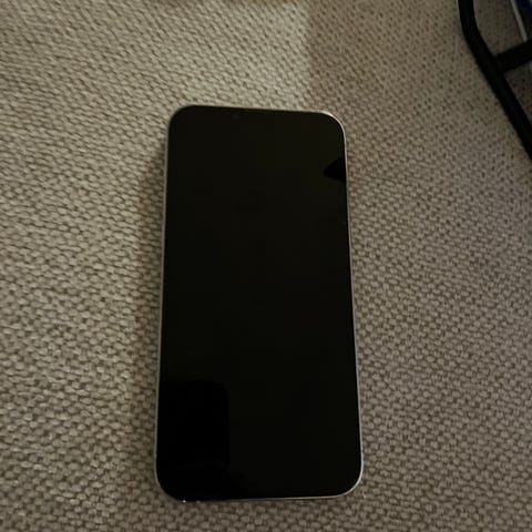 Apple iPhone 13 Pro Max smartphone med 1 TB lagerplads i sølvfarve. Enheden har en stor skærm, tre kameraer på bagsiden og en robust metalramme. Telefonen leveres med et matchende silikonecover i mørkegrøn farve. Designet til både privat og professionel brug med stor lagringskapacitet. Original Emballage følger med. Prisen er fast, kan ikke forhandles.