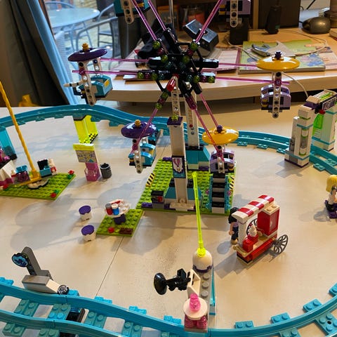 Alle brikkerne er fordelt i antallet af poser som står i byggevejledningen (altså pose 1,2,3 osv.) så det føles som helt nyt sæt.