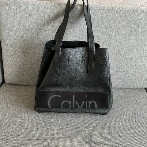 Calvin Klein taske til kvinder fremstillet i sort kunstlæder. Tasken måler 28 cm i højden, 41 cm i længden og 16,5 cm i bredden. Den har skulderremme med en længde på 24 cm. Tasken har et enkelt design med en dekorativ spænde på fronten og et indvendigt rum med lynlås.