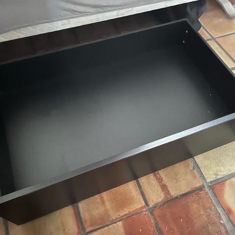 Mål: 76,5 i bredden (71 cm selve skuffen), 18,5 cm høj (15 cm indvendig i skuffen), 60 cm dyb.