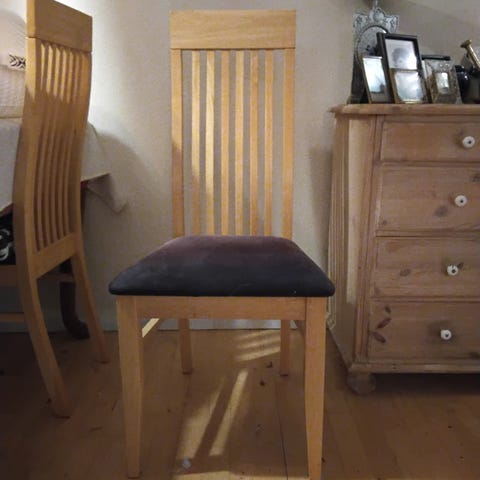 Helt ny - 6 x Spisebordsstol træ med polstret sæde natur og lys beige