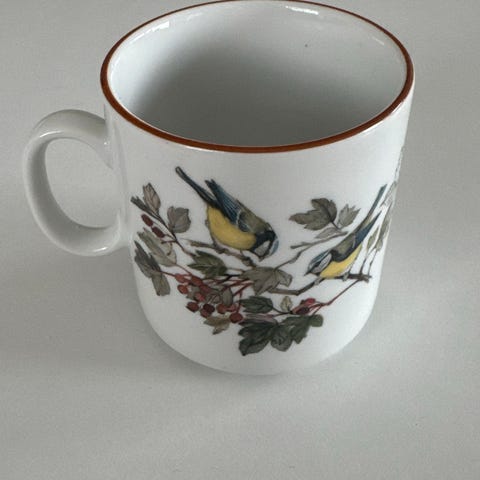 Der er et par meget små afslag i den brune kantglasur på kruset med edderfuglene (se fotos) - derfor den lave pris.