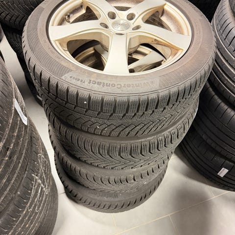 Continental Wintercontact TS 870 i str. 225 / 50 x 17 sælges. De har siddet på en Mercedes C220. Købt ultimo dec. 22 og har sidst været på en bil 7. april 24, så de er ikke brugt særlig meget, da der mest arbejdes hjemmefra, men det ene dæk er punkteret og skal skiftes.