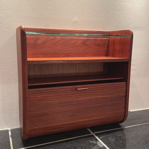 Rud Thygesen skab med intarsia finer. Skabet står i mit sommerhus, så har ikke præcise mål pt men ca mål er B:60 H:70 D:40.