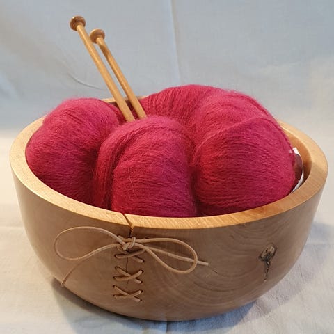 Trævase til f.eks. strikkepinde, lavet af lyst træ. Cylindrisk form med glat overflade og åben top. Velegnet til organisering og opbevaring af strikkepinde eller lignende redskaber.