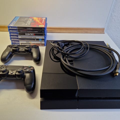PlayStation 4 i fin og fuldt fungerende stand sælges. Konsollen er den klassiske 500 GB-model, hvilket giver god plads til spil og apps. Begge DualShock-controllere fungerer som de skal, og alt er renset og klar til brug.