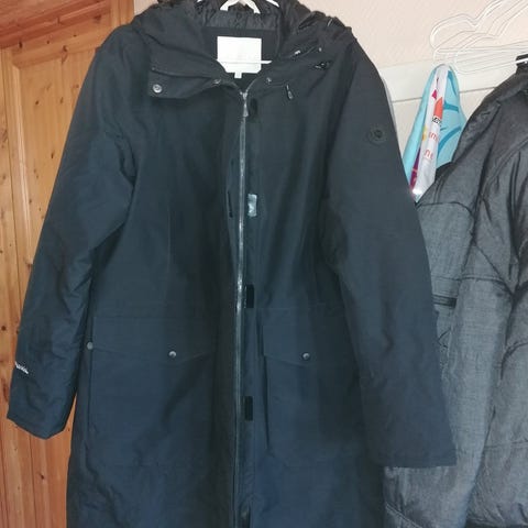 Ellos Vinterfrakke i sort, størrelse 42/44.Jakken er lavet af polyester og er designet til at give varme og komfort i kolde vejrforhold.