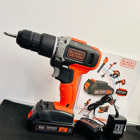 Black & Decker 10.8V Compact Lithium-Ion boremaskine i sort og rød farve. Leveres med batteri og oplader i en bærbar kuffert. Velegnet til lette boreopgaver og skruer. Batteriets spænding er 10.8 volt, hvilket giver en god balance mellem kraft og vægt. Fast pris.