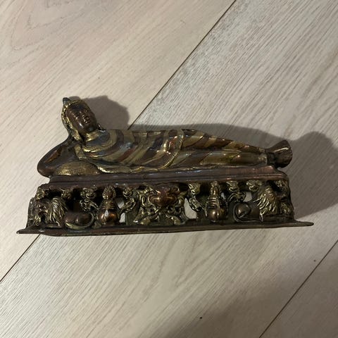 Buddha Statue lavet af messing. Statuen forestiller sandsynligvis Vajrasattva, en vigtig gud inden for tibetansk buddhisme, der er kendt som renselsens Buddha.