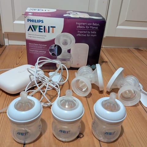 Philips Avent Elektrisk brystpumpe indeholder alt på foto. Sutteflasken haves ikke længere.