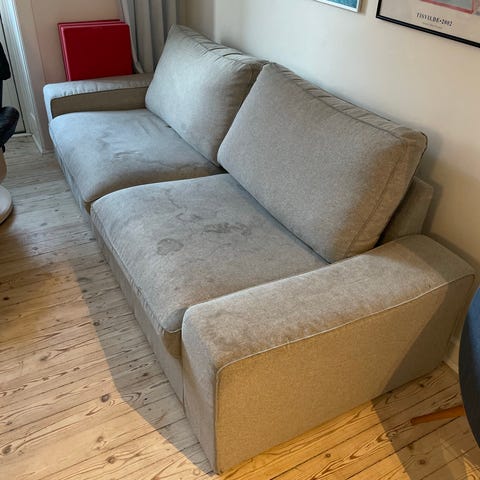 Ikea kivik sofa, den sælges på grund af flytning. Fejler intet fra ikke ryger hjem. Der er købt nyt betræk til sofaen ikke puffen i januar. Puffen med følger ikke