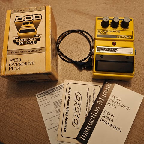 Som ny! Den har efter sigende været udstillingsmodel i en instrumentbutik. Kommer i original kasse med dertil hørende indhold (se billeder). Jeg smider et adaptorkabel med i handlen, da den bruger det gamle "mini-jack"-agtige stik (som gamle Ibanez/MXR-pedaler).
