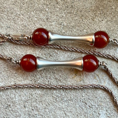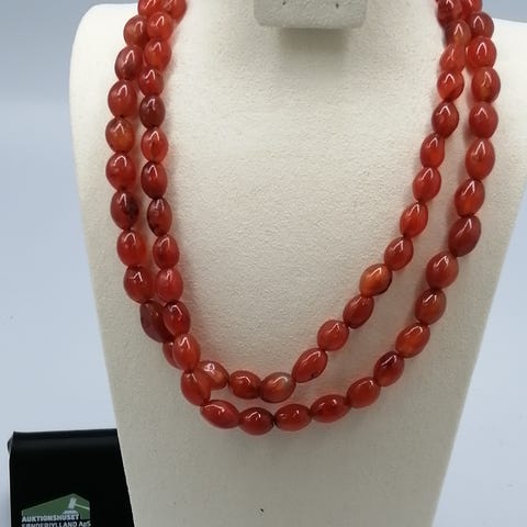 Vintage karneol stenkæde, 925 sølv lås