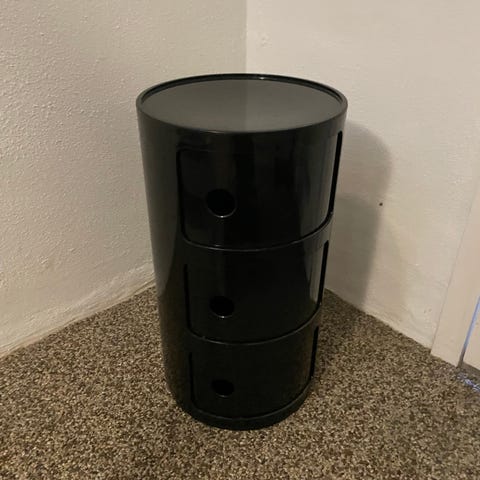 Designet af Giotto Stoppino for Kartell i 1980’erne er denne ikoniske magasinholder, model 4675, et markant eksempel på mid-century modern design. Fremstillet i Italien og udført i slidstærk, formstøbt plast i en elegant offwhite farve. Holderen har fire rummelige rum til opbevaring af magasiner, aviser eller vinylplader samt et praktisk centralt håndtag, der gør den let at flytte.