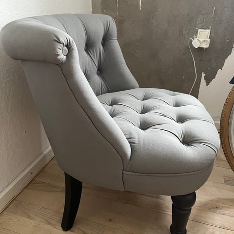 Grå polstret lænestol med træben