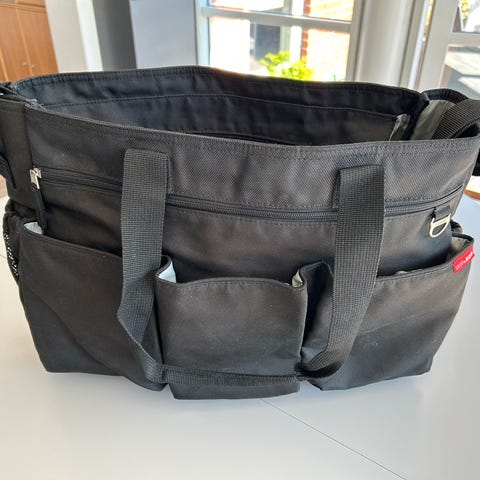 - Nypris: 799kr (link: https://www.jollyroom.dk/mor/pusletasker/skip-hop-duo-signature-pusletaske-grey-melange )