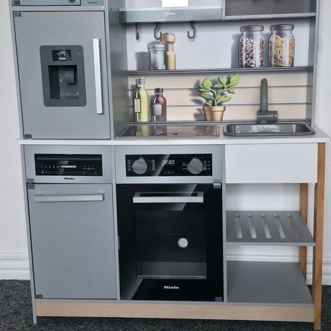 Legekøkken fra Miele inkl. udstyr i rigtig god stand - kan justeres i højden og der er lyd og lys i kogepladen.