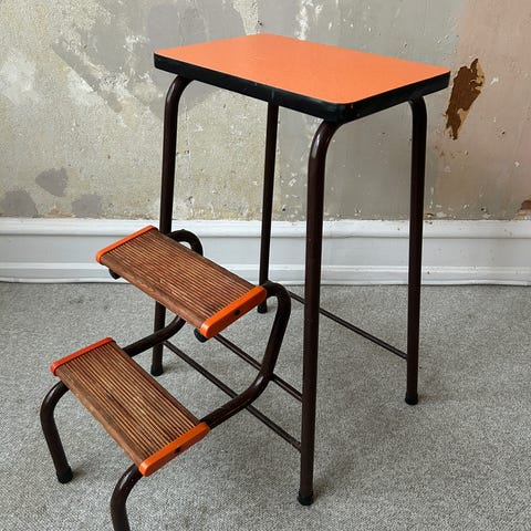 Retro teak teaktræ vintage midcentury furniture trappe stol skammel trin taburet