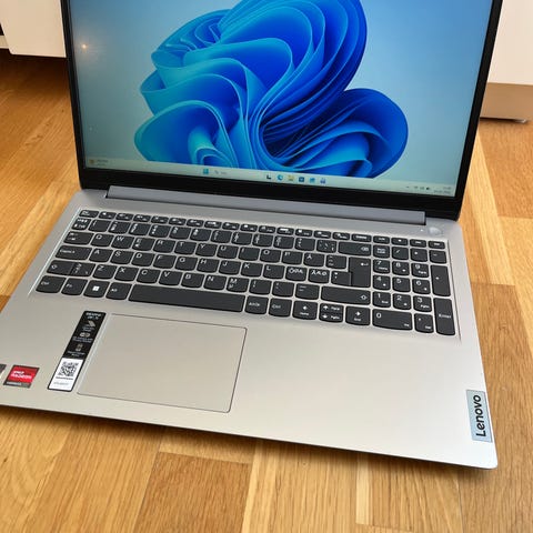 AMD Ryzen 5 7520U-processor, 2.8 GHz til 4.3 GHz, 15,6 FullHD skærm, 8 GB DDR5 RAM, 512GB SSD, Grafik AMD Radeon 610M, USB-A 3.2 port, HDMI-port, web-camera 720p HD-opløsning, med privacy shutter, touchpad med multi- touch. SD-kort, med batteri og oplader. med Win 11, der bliver nulstillet. Købt Elgiganten.
