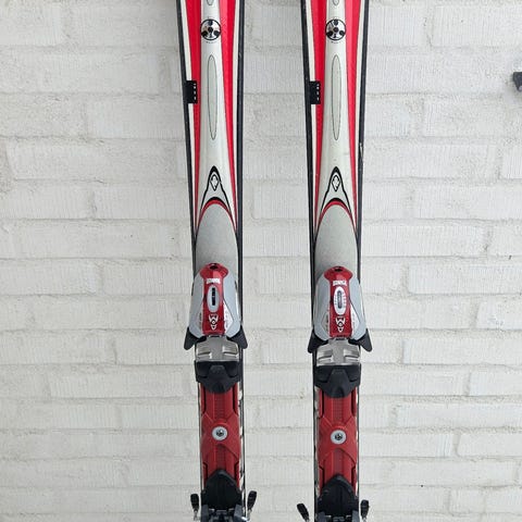 K2 Silencer med en længde på 172 cm. Skiene er hvide med et diskret mønster og udstyret med bindingssystem. Velegnet til skiløb på alt terræn. En lækker twin tip ski, som er gode i alt terræn