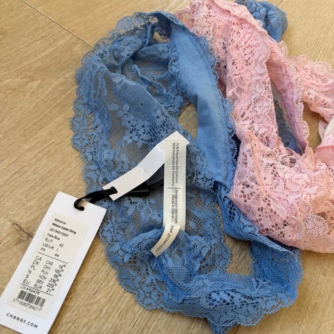 Elegant sort g-streng med en smuk blonde blomsterdekoration. G-strengen har fine detaljer som små sløjfer og en let, gennemsigtig mesh.