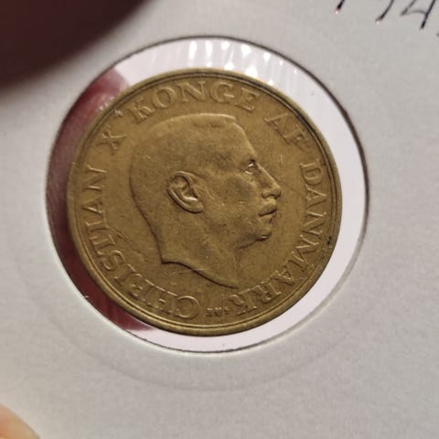 1 krone fra 1943 Pæn mønt i Hb holder det kun rids i Hb holder og ikke på mønten