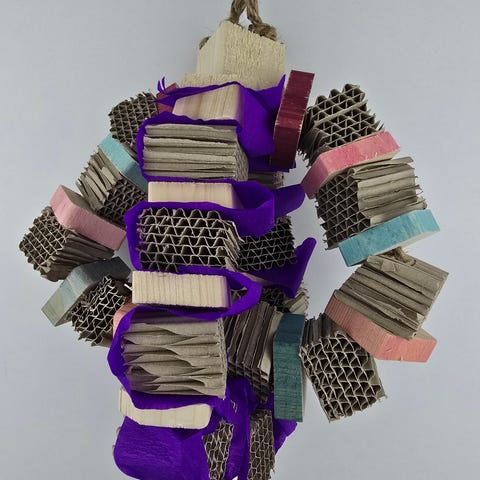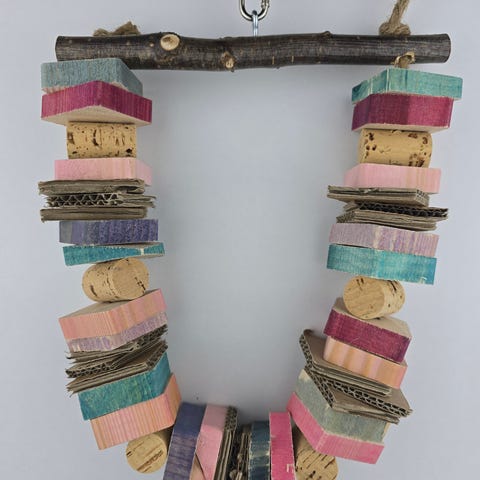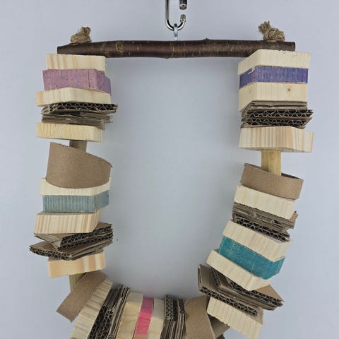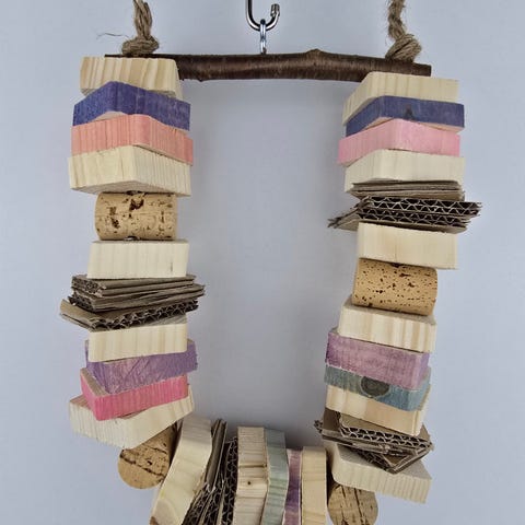 Mit håndlavede fuglelegetøj er skabt for at give din fugl masser af glæde, aktivitet og mental stimulering. Hvert eneste legetøj er formet i hånden med stor omhu, så det både pynter i buret og giver din fugl noget spændende at udforske.