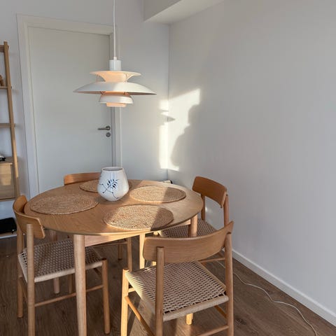 Spisebord, stole og gulvtæppe, alle i god stand. Afhentning i Aarhus