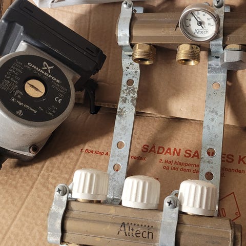 Grundfos cirkulationspumpe, den har kørt et års til i vores varmepumpe men hele varmepumpen blev udskiftet og derfor afmonterede jeg pumpen