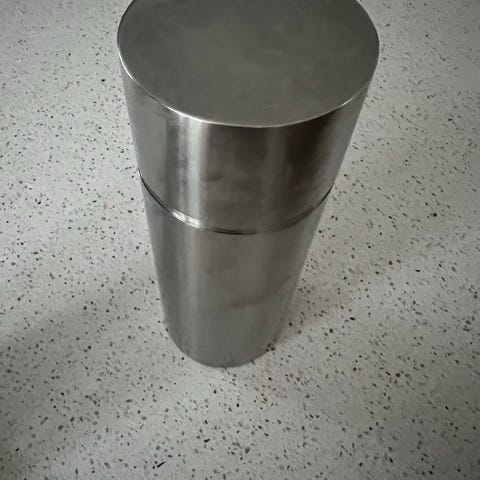 Produktet er en glat, cylindrisk termos med en skruelåg, der holder på varme og kulde. Den har en glansfuld overflade.,Afhentes i:,Røde Kors Sorø (335),Bemærk at mail, chat og beskeder ikke besvares, og varen skal købes på knappen "Gå til varen"