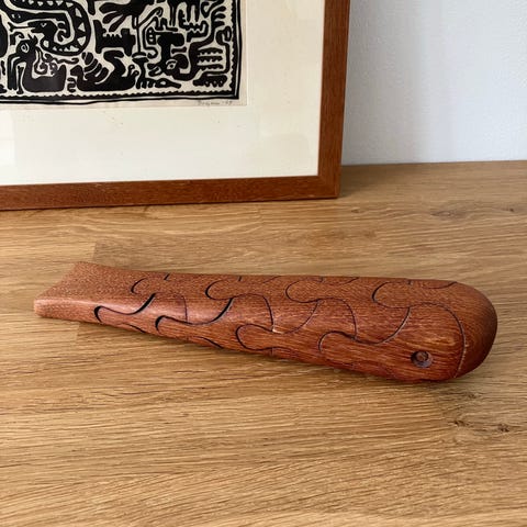 Flot gravhund i teaktræ fra Trip Trap. Lavet som puzzle hund. Øre & hale i brunt læder. Længde: ca. 30 cm ,Afhentes i:,Røde Kors Bellinge (461),Bemærk at mail, chat og beskeder ikke besvares, og varen skal købes på knappen "Gå til varen"