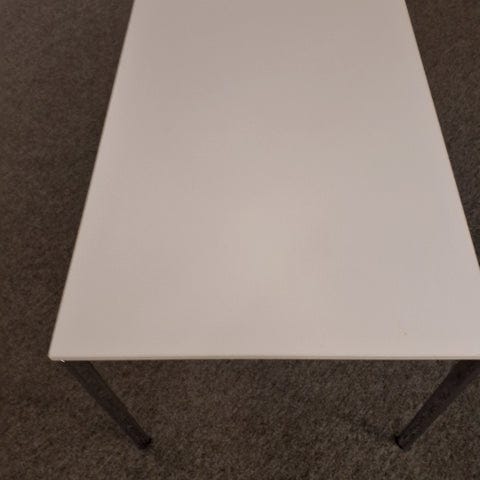 Bordet har en glat, hvid overflade i laminat og har forkromede metalben. Designet er enkelt og moderne. ,Afhentes i:,Røde Kors Hjallerup (807),Bemærk at mail, chat og beskeder ikke besvares, og varen skal købes på knappen "Gå til varen"