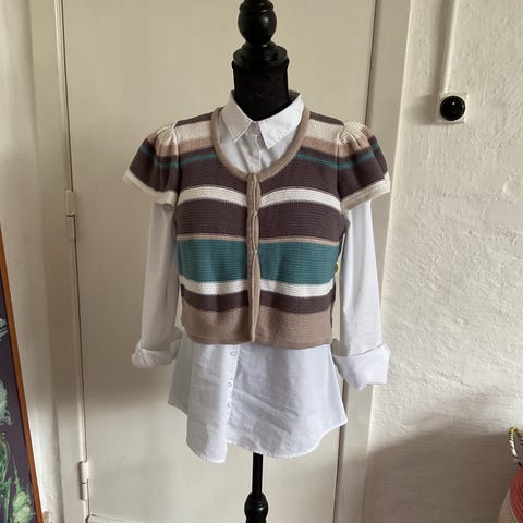 Kaffe, fin trøje med kraftig tryklås i farver som foto