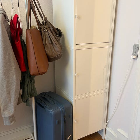 Fire skabe på 100 cm. i bredden med skuffer og hylder. Et hjørneskab med hylde og bøjlestang. I skal selv stå for at skille ad (jeg skal nok tømme dem inden). Står i kælder. Sælges helst samlet. Pris er pr. skab med låger, hylder og skuffer. Kom med bud 😀