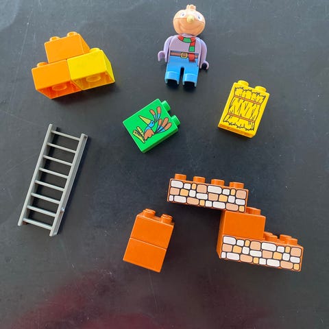 DUPLO, dele til Byggemand Bob maskiner, ialt 11 reservedele - heraf de vigtige dele til den Røde maskine som kan suppleres af andre alm klodser.
