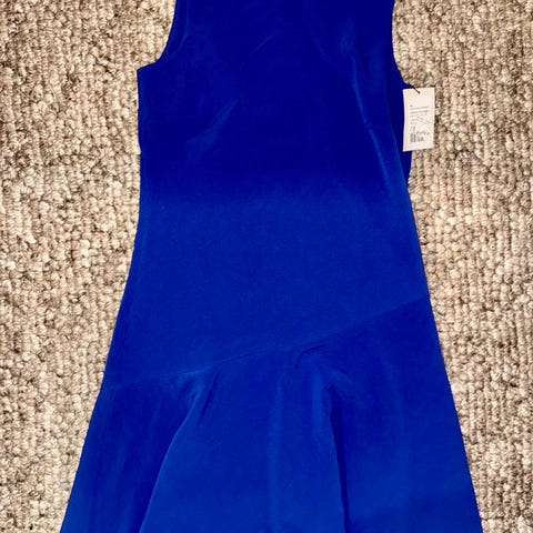 Flot blå kjole til jul eller nytår eller bare hvis man skal til en almindelig fest kan bruges til alle mulige ting under kjolen er meget blød af bomuld den har masser af stræk i bm2x65-70