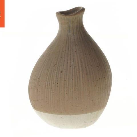 Dette er en grå vase med et riflet design. Vasen har en cylindrisk form og er lavet af et solidt materiale, der er egnet til at holde blomster eller dekorationer. Den har dimensionerne 15x11,5 cm og en åben top. Der er en stregkode på bunden af vasen, som indikerer den er fra en producent, dog fremgår producentens navn ikke.